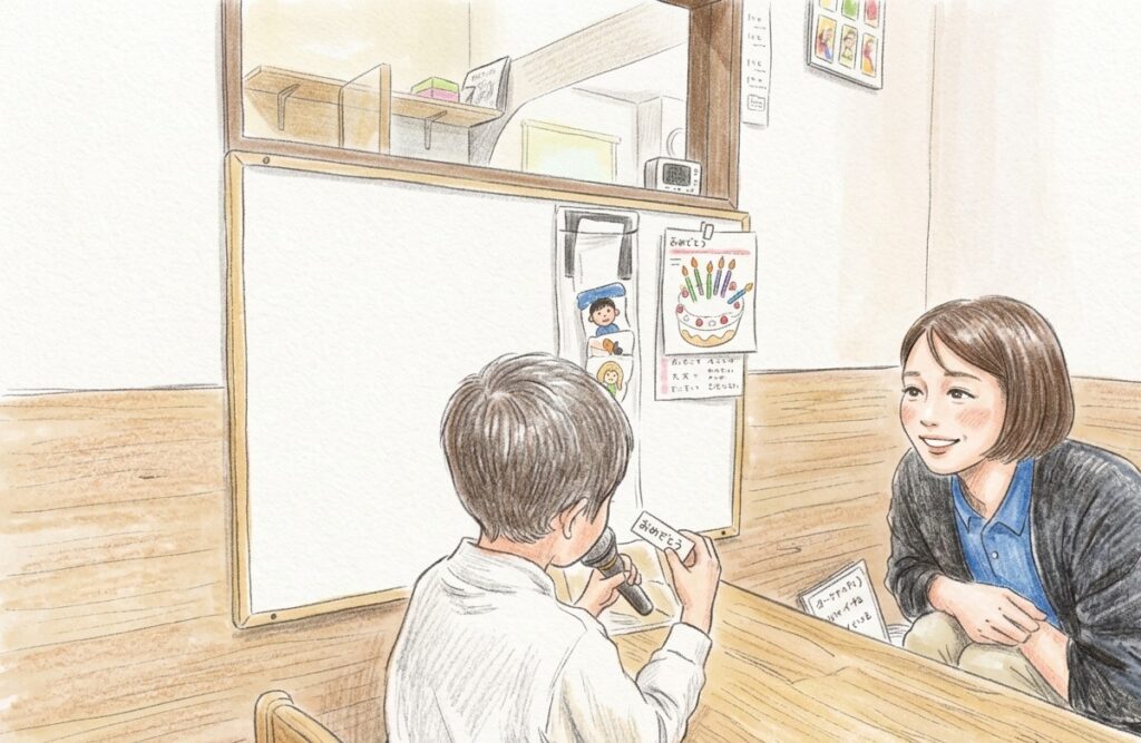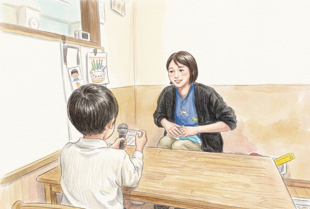 を育むことをねらいとしています。無理に話すことを求めるのではなく、マイクという“きっかけ”を通して、